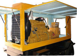 玉龙柴油发电机组/移动柴油发电机组设计独具创新,机动性高、重心低、制动安全、制造精良、外形美观。 玉龙拖车车架采用槽梁焊接成框架结构,节点选择合理、强度高、刚性好;同时装有钢板弹簧悬架结构;拖车采用高度可调节插销式牵引架,适用于各种高度牵引车;采用圆形钢管焊接直通式车轴,结构紧凑,安全可靠;车架四角设有机械式支撑装置,配备惯性行车制动、驻车制动和脱离应急制动,确保机组在各种状况下的安全;车架前端设有支撑轮,具备承受机组垂直载荷的功能的同时还具备导向功能;整车配备转向和刹车指示灯,同时装有尾灯标准插头